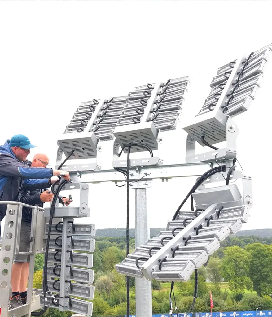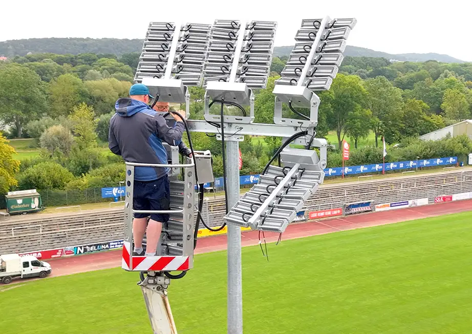 Gerade bei Sportstätten mit hohen Masten oder schwer zugänglichen Leuchten reduziert dies Serviceaufwand und Betriebskosten erheblich.