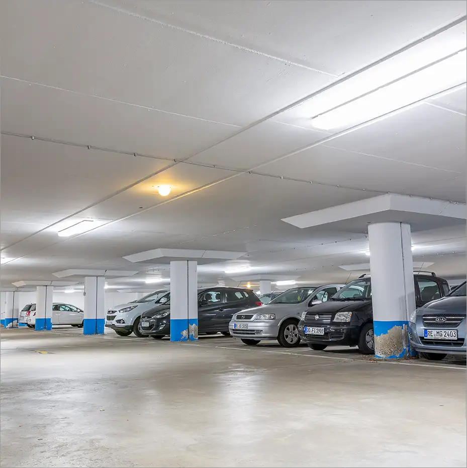 LED-Beleuchtung für Parkplätze und Parkhäuser muss zuverlässig, sicher und energieeffizient sein. Die Systeme von MPI LED- & Energiekonzepte sind für unterschiedlichste Umgebungssituationen ausgelegt und sorgen für klare Sicht, gute Orientierung und ein sicheres Umfeld – zu jeder Tages- und Jahreszeit.