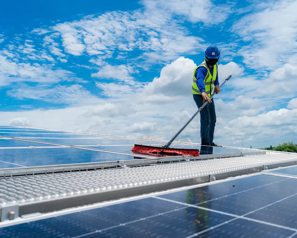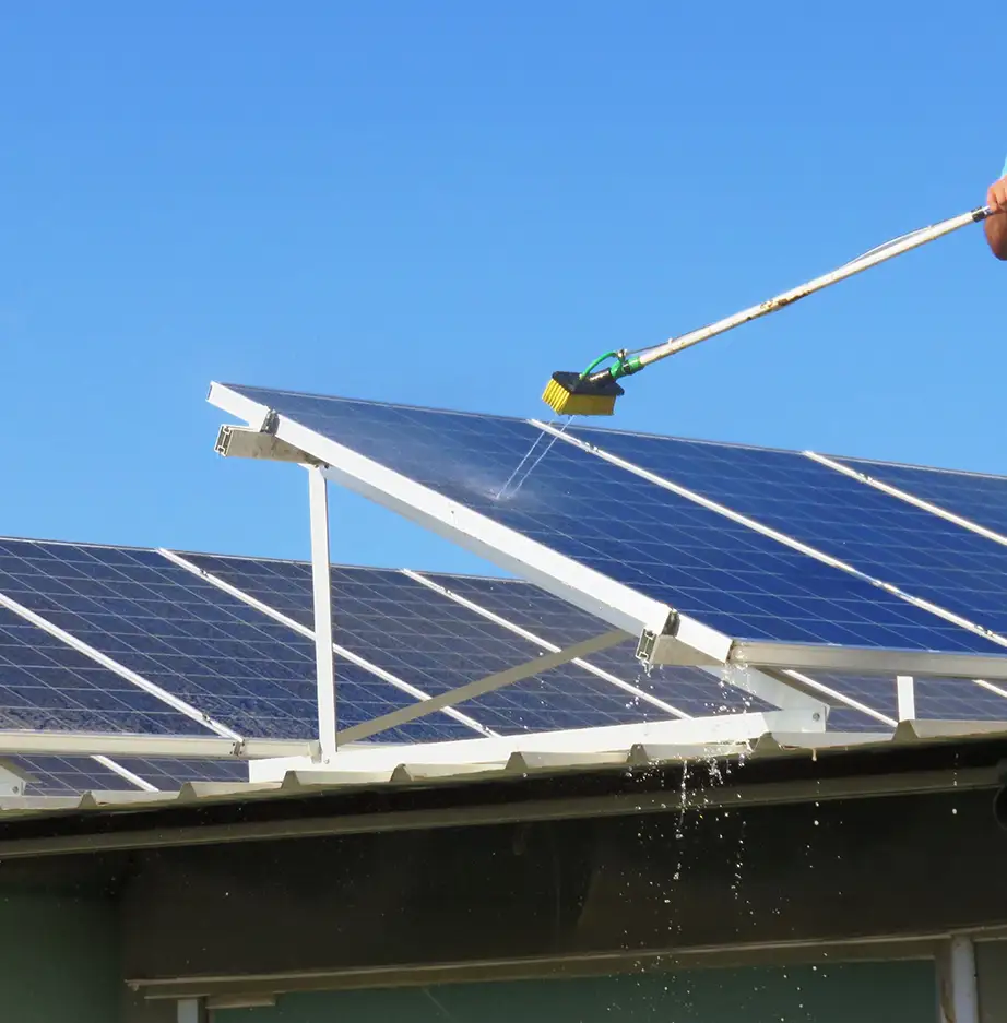 Je nach Anlagentyp kommen spezielle Bürstensysteme, Stangensysteme oder Reinigungseinheiten zum Einsatz, die auch große Flächen effizient bearbeiten können. Bei schwer zugänglichen Anlagen oder großen Solarparks ist der Einsatz von Teleskop- und Robotersystemen möglich.