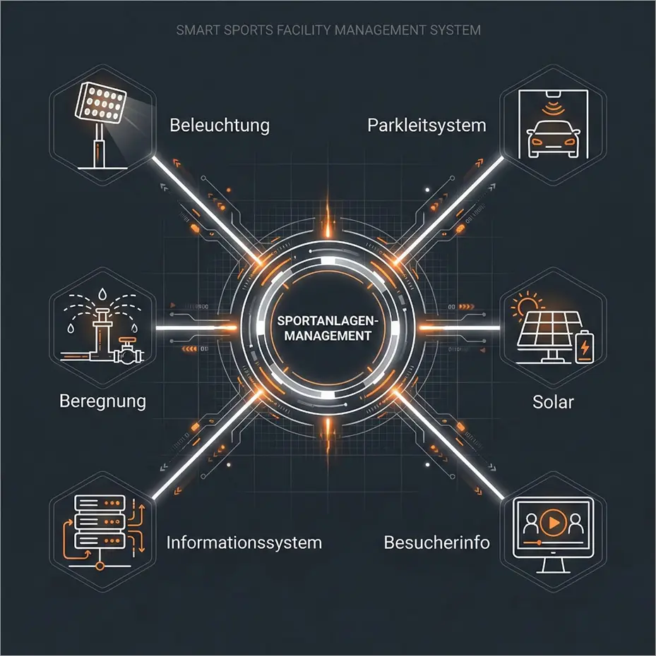 Der modulare Aufbau erlaubt eine schrittweise Erweiterung – von einfachen Lichtsteuerungen bis hin zur vollständig vernetzten Sportanlage.